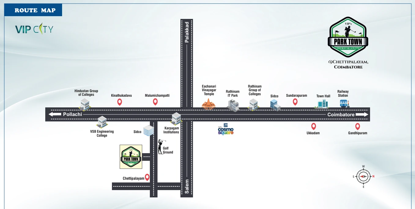 With seamless travel to central Coimbatore, industries, and IT corridors, VIP Park Town Chettipalayam becomes the perfect address for families, retirees, and NRIs.